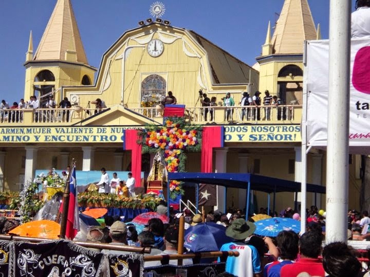 Y como ésta es sólo la vigilia, al día siguiente sacan a la Virgen a la plaza y es ahí donde recién cesan las trompetas, matracas y bombos. Se saluda respetuosamente, se realiza la misa y al final, se vuelve a venerar, al más puro estilo de la Fiesta de la Tirana!!