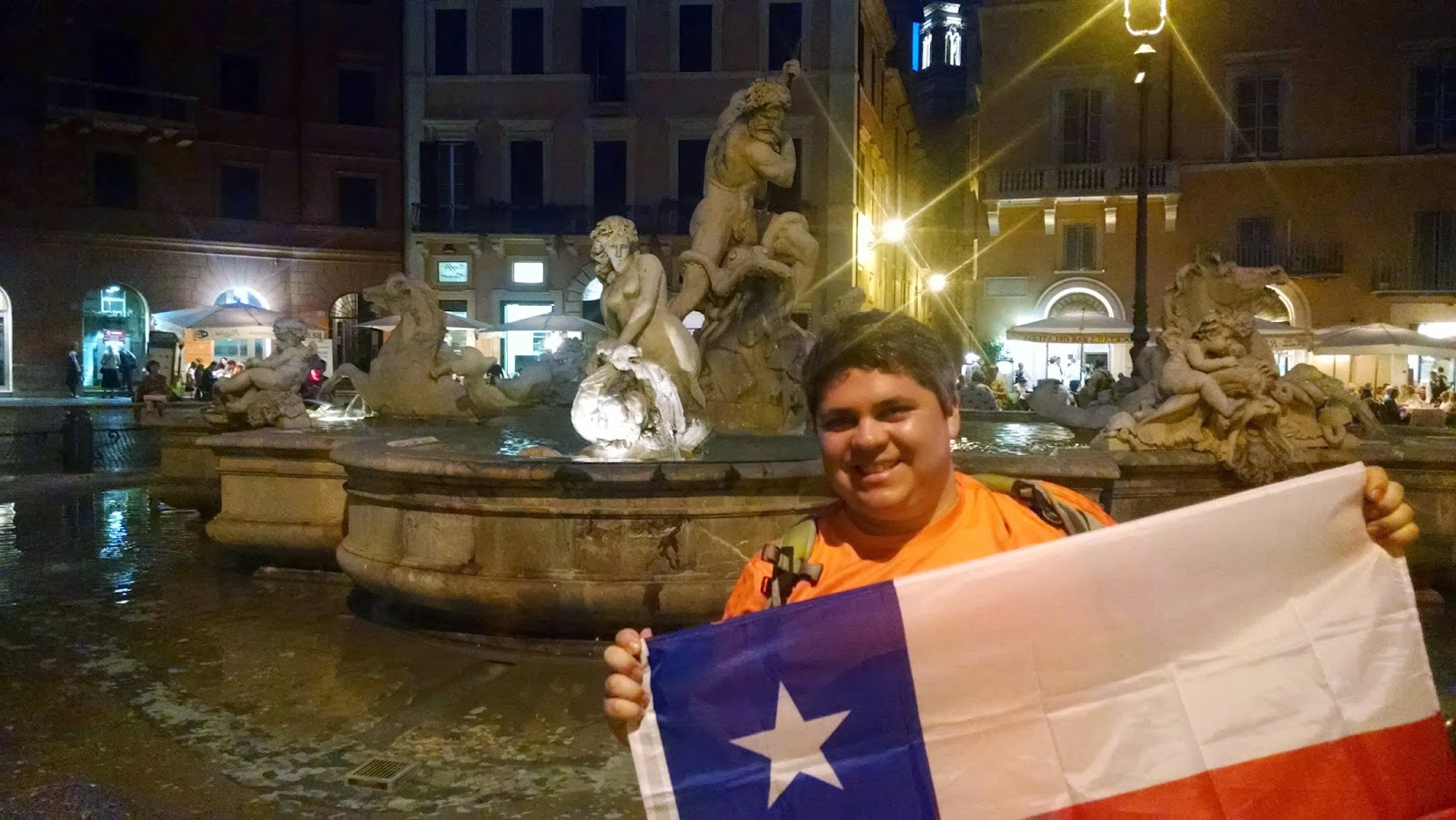 Plaza Navona, Roma, Italia. Con la bandera Chilena un 18 de Septiembre | Bitácoras Viajeras |
